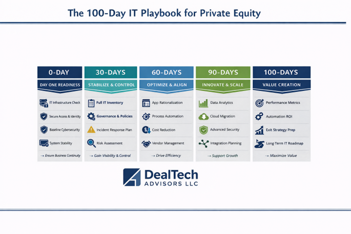 - At DealTech Advisors, we use a phased outcome-driven IT playbook
